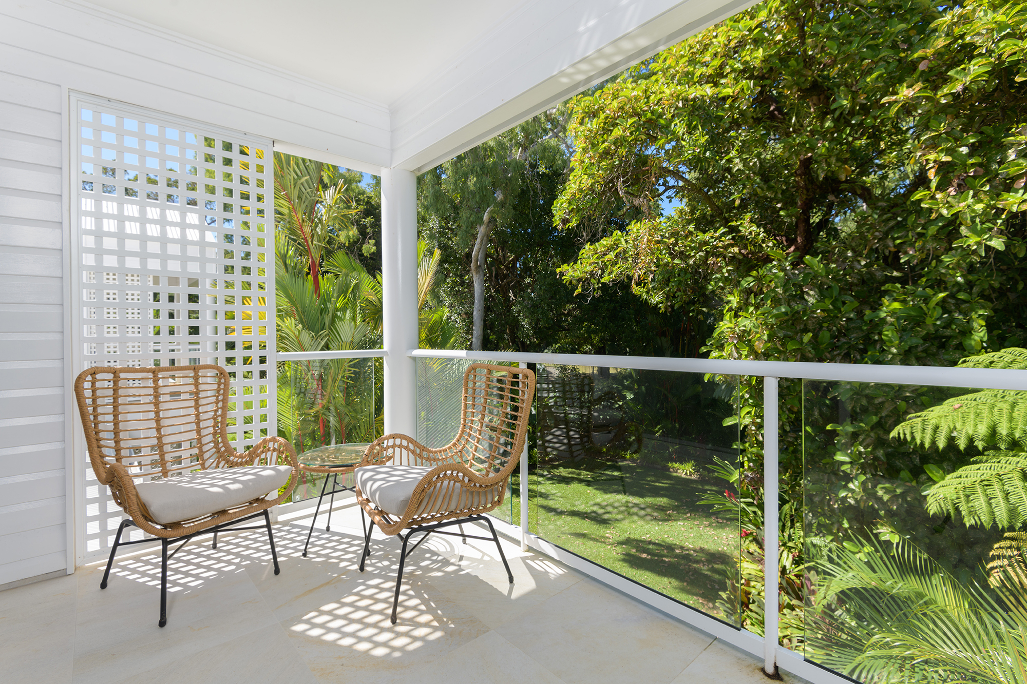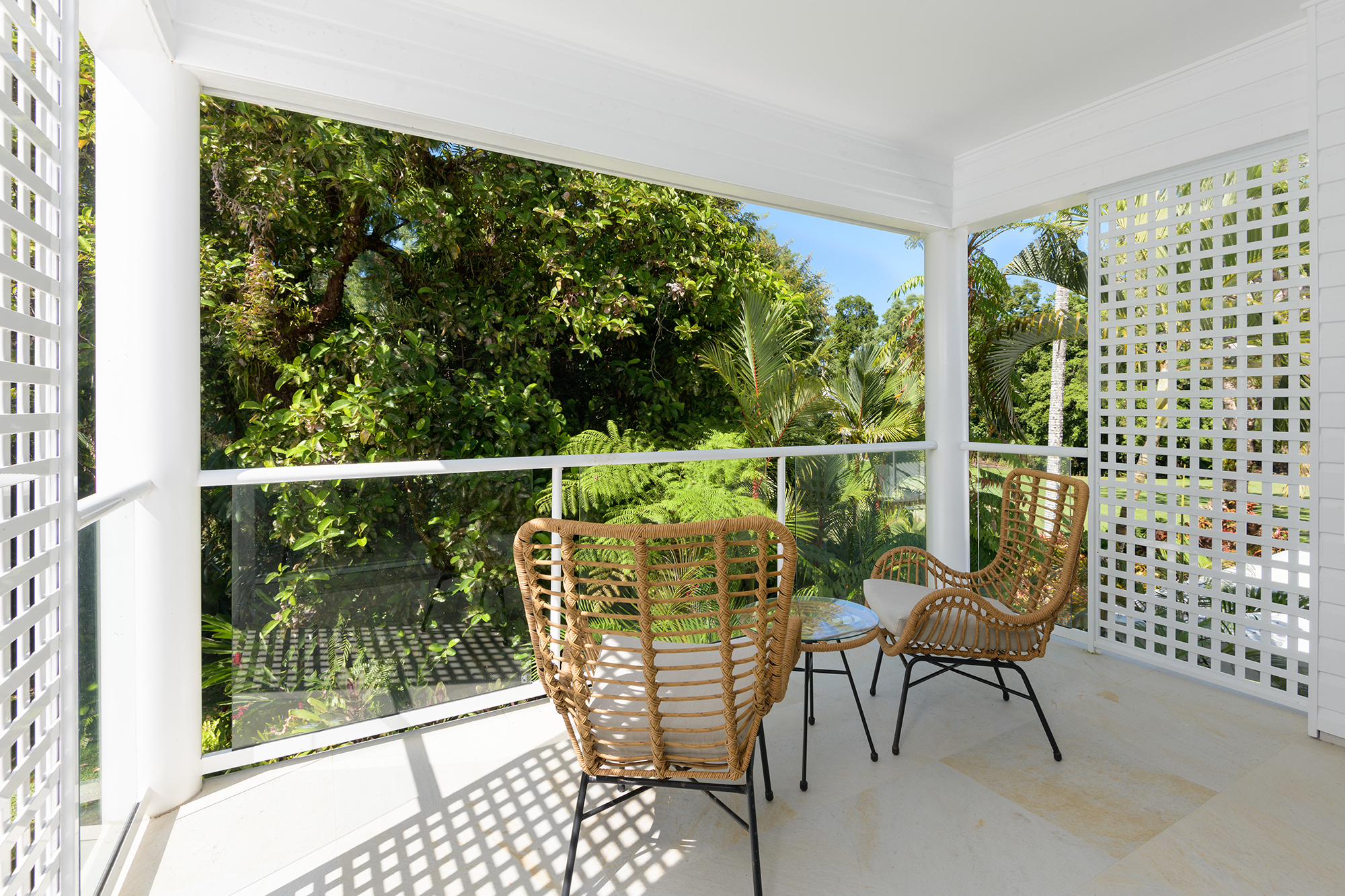 The two bedrooms are both truly king size. The master on the first floor is accessed via an elevated skywalk and has its own east facing balcony overlooking the grounds and the ground floor guest suite provides a private open aired walled retreat.