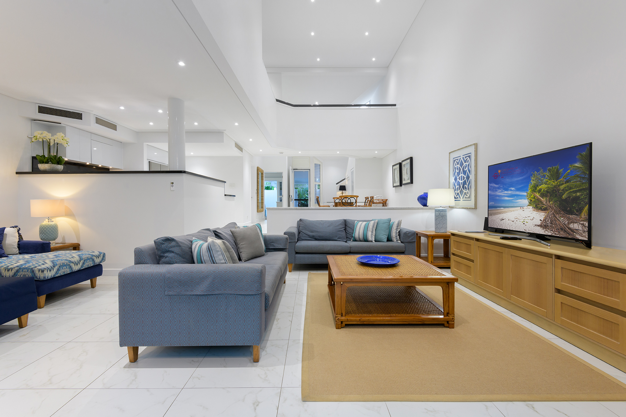 From the moment you enter, you are greeted with holiday vibes. The timeless design of the villa is perfect - providing large, airy and open rooms with vaulted ceilings and loads of natural light. This villa oozes a relaxed tropical feel.